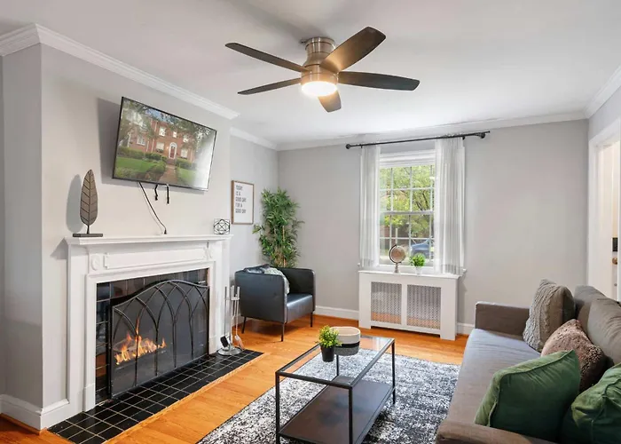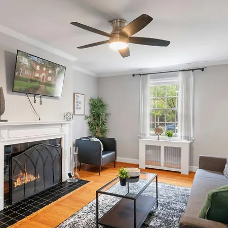 De 2-slaapkamer Charming Townhouse Retreat By Cozysuites Alexandria villa is gesitueerd op afstand van 2 km tot het Torpedo Factory Art Center en biedt toegang tot bezienswaardigheden in de omgeving. Dit vakantiehuis ligt in de historische wijk en biedt parkeerplaatsen, evenals Wi-Fi.